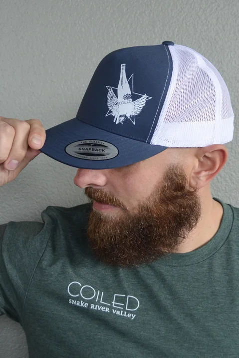 True story: When Leslie Preston approached Julia of Folia Design to come up with her logo and label design back in 2007, the selected name was based on the valley where the grapes were being sourced in Idaho: the Snake River Valley, hence COILED Wines. However, Leslie admitted she HATED snakes (emphasis on H.A.T.E.D.) so, no images of snakes was to be used! Folia Design just got clever with what part of the snake could be used. Since then, the COILED Wines brand has evolved, introducing additional wines and vintages and a sibling label called Translations. In 2017, Julia helped with getting the brand inline with the newly acquisitioned Garden City building which is their production hub and tasting room as well as the new downtown wine bar. And to think, those pretty patterns of scales are climbing all over Leslie, the COILED Wines team and visitors.